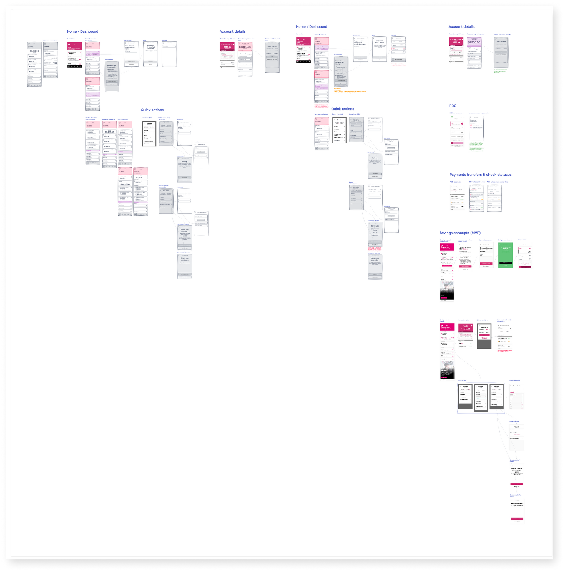 Even with the “simplification” of not impacting our onboarding experience at all, we still had to ensure that entire existing app experience would support and continue to make sense regardless of a user having one or two open accounts. This required an extensive amount of evaluation into points of impact within our existing experience, and wireframing to explore potential solutions for integration.