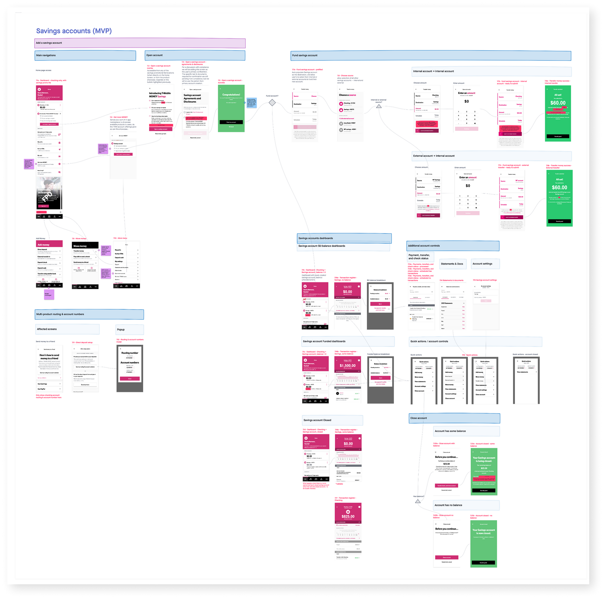 As I began working with the product team to define the MVP requirements for a new Savings account, it was decided that we would not introduce a multi-product selection to our initial signup flow. The ability to open a Savings account would only be available once a user was logged in and an active Checking Account holder.