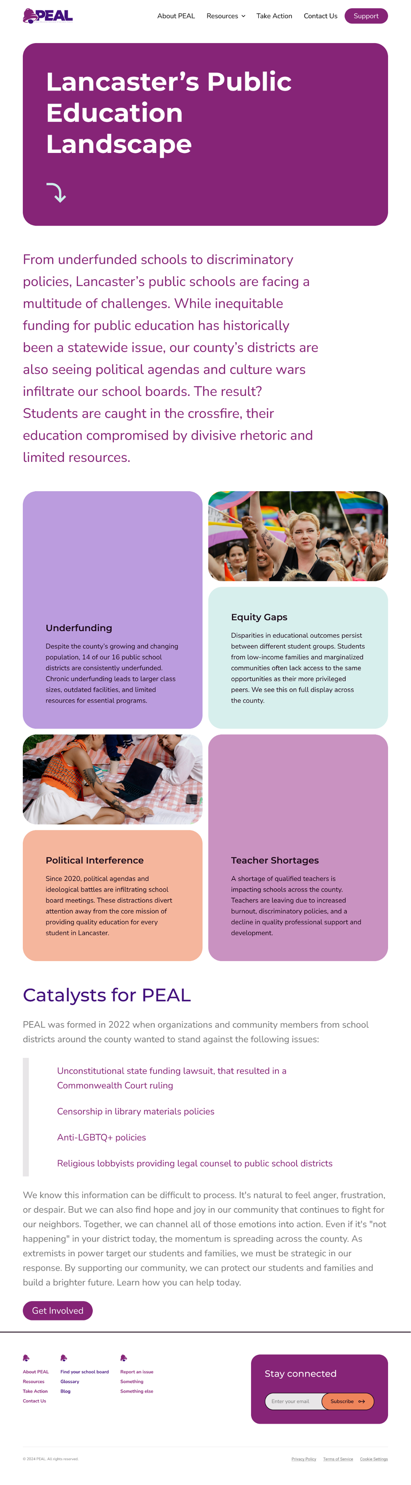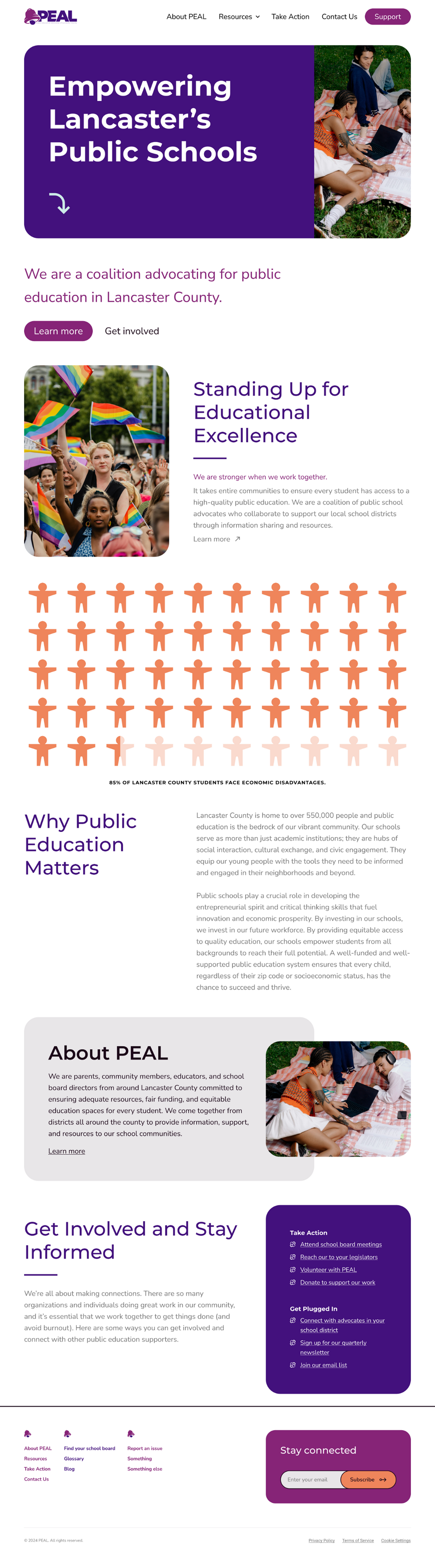 In order to grow their organization and impact, PEAL wanted to update their brand identity and build a web-based platform to share county-wide news and resources — providing a gateway to support public education at the local and state level.